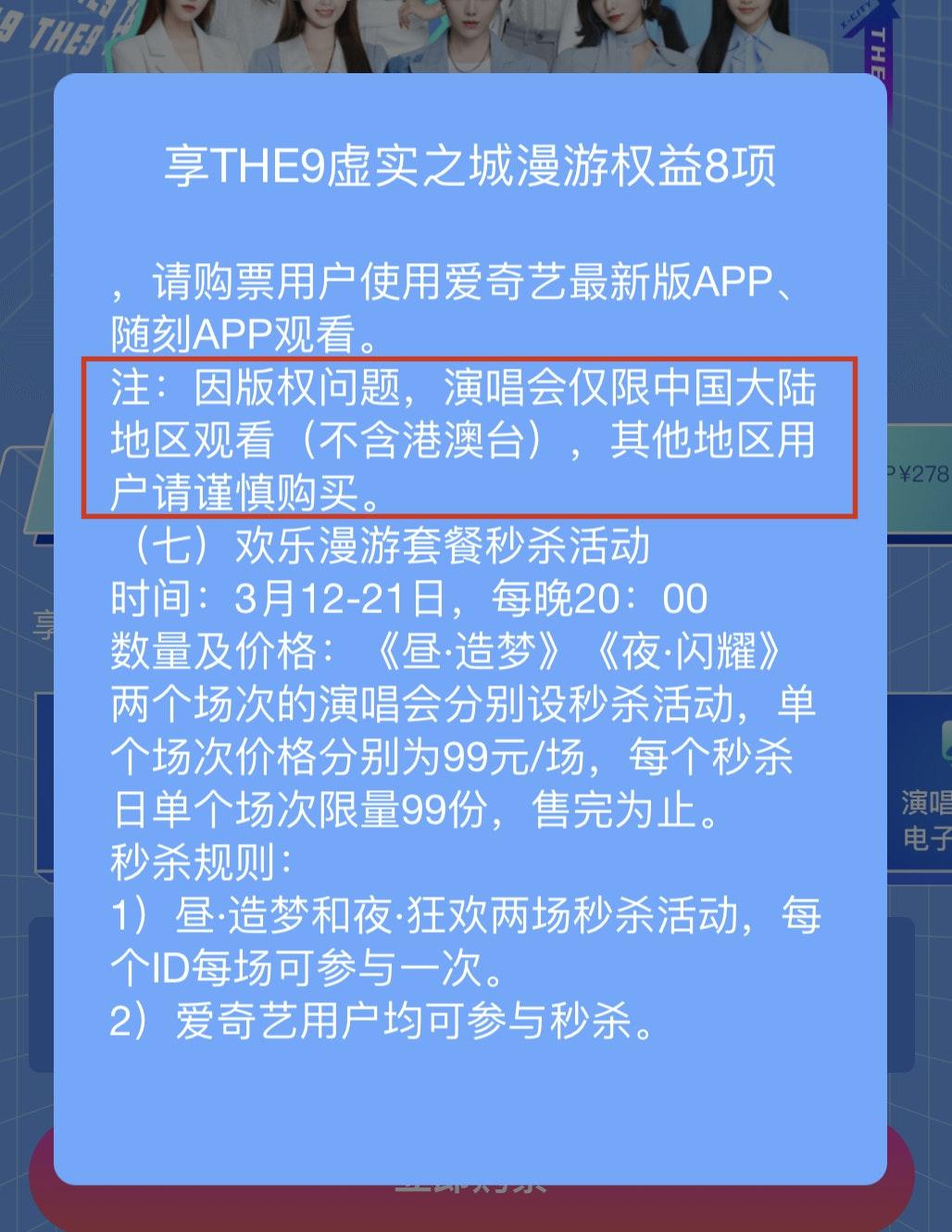 但是一些海外的粉丝发现,因为版权原因,演唱会仅限中国大陆地区观看,其他地区的账号买不了也不能看。