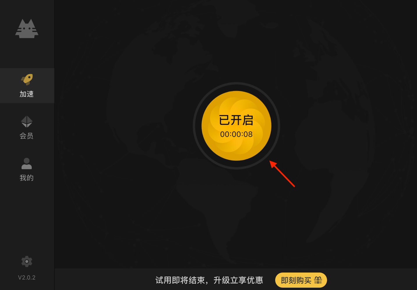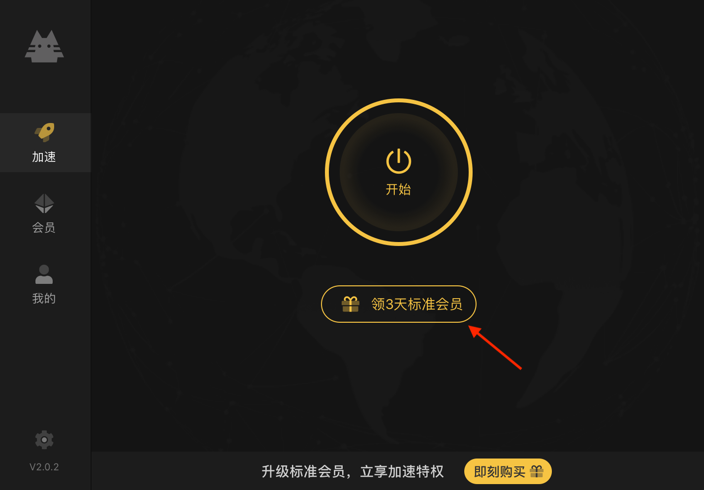 1、下载注册加速喵后,打开界面,点击领取3天会员。